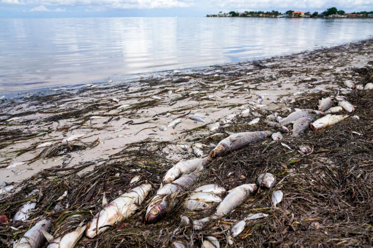 Occasional mass deaths of fish or marine animals can happen due to environmental factors such as: