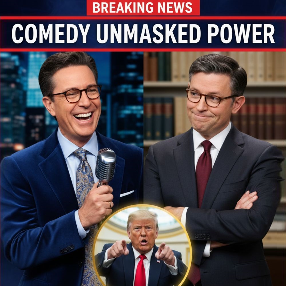 EXPLOSIVE REVEAL: Stephen Colbert’s Routine Jokes Took a Dramatic Turn Into Total Disorder as He Unmasked Mike Johnson and Trump Onstage Leaving the Nation’s Capital Staggering in Disbelief